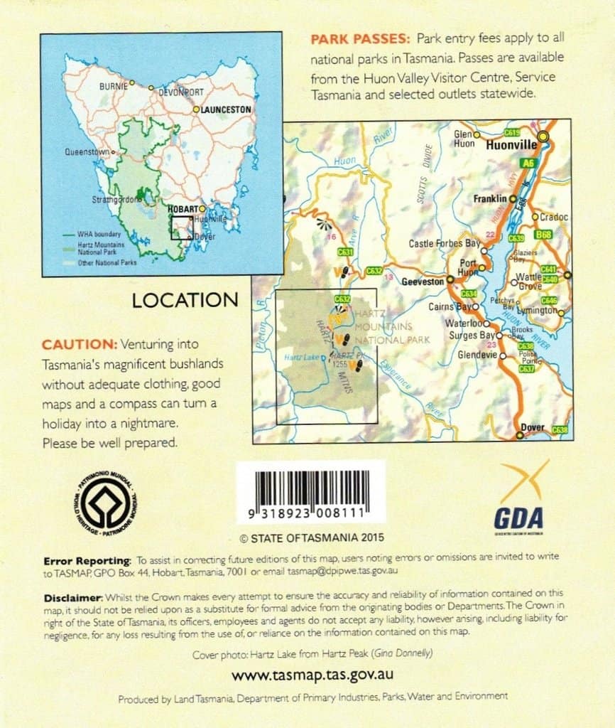 With highlighted walking tracks and general topographic detail. The reverse has notes on vegetation, bushwalking tips, animals and history of the area.
